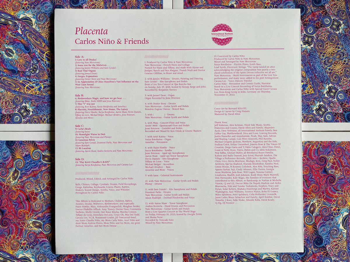 Placenta is the fourth collection of broadly imaginative and highly collaborative Carlos Niño & Friends music released on International Anthem in the last four years. It is also the first new music to be released by Carlos Niño & Friends following the November 2023 release of André 3000’s New Blue Sun – an album which Carlos produced alongside André, while co-writing, co-creating/playing, and co-mixing every song.